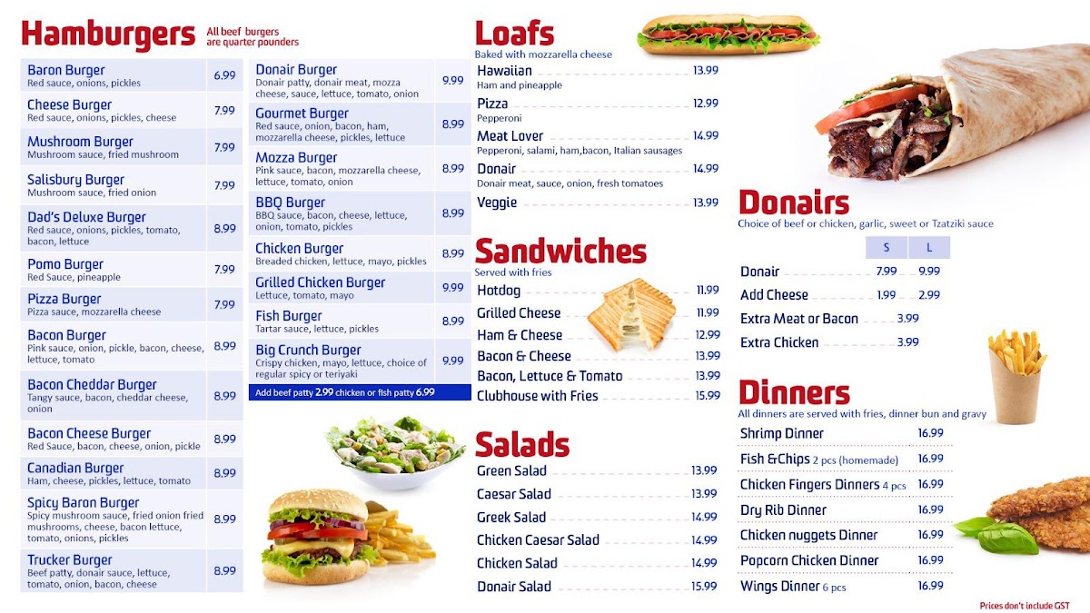 At Burger Baron, the menu offers a welcoming blend of classic and comforting fast food favorites alongside some unique twists. The selection leans toward casual bites that feel right at home whether you’re grabbing a quick meal on the go or settling in for a laid-back and satisfying lunch or dinner.